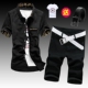 春夏季男式韩版短袖牛仔衬衫七分裤一套装休闲潮流夏装衬衣服外套