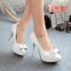 春夏季新款超高跟防水台蝴蝶结浅口糖果色甜美少女系纯色低帮鞋子