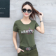 迷彩圆领短袖T恤女夏2017韩版新款纯棉修身显瘦军绿t恤休闲迷彩服