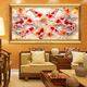 手绘客厅九鱼图油画横版玄关餐厅纯手工九鱼鲤鱼装饰挂壁画