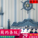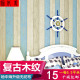 地中海木板风格蓝白竖条纹墙纸复古蓝色木纹卧室客厅无纺布壁纸