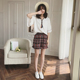 2017夏季新款韩版a字娃娃裙宽松显瘦格子吊带裙+T恤学生两件套女