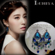原创手工水晶长款耳环耳坠2017时尚甜美水钻蓝色耳饰民族风防过敏