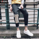 2017春夏男士港风个性贴布牛仔裤街头男生乞丐裤修身弹力九分裤子