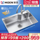 摩恩304不锈钢厨房净铅龙头加厚水槽厨盆洗菜盆双槽套装28104SLS