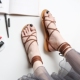 凉鞋绑带鞋平底女潮韩国2017夏新欧美达人红人铆钉绑带鞋学院