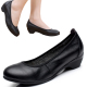 不磨脚 防滑 工作鞋女黑色高跟坡跟女鞋职业鞋真皮浅口单鞋软底鞋