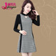 冬装加厚加绒连衣裙女2016新款韩版千鸟格修身长袖冬季打底A字裙