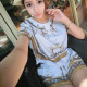 BOSSY LADY枪枪家 时尚条纹双排扣连衣裙翻领修身短袖西装裙女OL