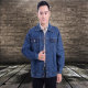 男春秋牛仔夹克上衣工作服外套中老年人宽松翻领扣子夹克衫老人装