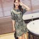 中长款t恤女夏装韩版休闲纯棉体恤短袖显瘦卡通印花连衣裙T恤裙