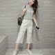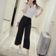 2017韩版宽松显瘦七分休闲裤女 松紧腰系带薄款雪纺九分阔腿裤夏