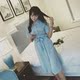 2016新款学生甜美小清新修身连衣裙露肩娃娃领蝴蝶结棉麻中裙子夏