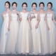伴娘服长款2016新款秋冬季时尚香槟色一字肩姐妹裙显瘦礼服连衣裙