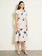 berrygirl2017春装新品V领复古印花大花短袖连衣裙SWFO171008