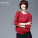 妮娜飘 女士圆领羊毛衫秋冬季显瘦纯羊毛百搭打底衫绣花女装毛衣