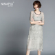 妮娜飘 2017早春新款五分袖真丝连衣裙时尚气质复古桑蚕丝长裙女