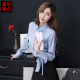 万衫臻品修身长袖衬衫 2017夏季新款圆领上衣 系带职业喇叭袖衬衣