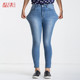 春装九分女裤加肥大码牛仔裤高腰显瘦高弹修身胖mm200斤小脚9分裤
