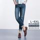春装高弹力加肥加大码女式牛仔裤胖mm松紧腰200斤修身小脚铅笔裤