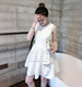 2017春夏新款极简新法式文艺风——深V白色连衣裙