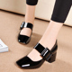 2017春季新款方头女鞋一字扣单鞋粗跟高跟鞋红色方跟鞋子百搭秋鞋