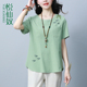 悦仙奴2017夏季新款女装宽松百搭短袖棉麻T恤女短款刺绣简约上衣
