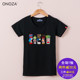 ONOZA2017夏季修身黑色T恤女 可爱5个雕像卡通学生棉短袖体恤1058