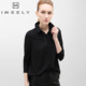 IMEELY 夏季宽松简约百搭 立领拼色雪纺长袖衬衫 女 衬衣