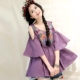 原创森女系民族风刺绣圆领露肩喇叭袖短袖绣花棉布衬衫娃娃衫上衣