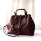 真皮水桶包日系文艺拉链装饰女包车缝线单肩包复古简约流苏斜挎包