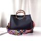 2017新款简约时尚圆环包手提 欧美撞色斜跨牛皮真皮女包潮包包