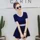 韩国裙式连体泳衣女保守小胸聚拢钢托纯色显瘦性感温泉度假游泳衣