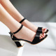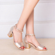 欧美时尚中跟露趾一字扣大码女鞋子简约百搭粗跟鞋小码优雅女鞋