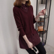 中长款针织衫女装假两件套2017新款春季韩版宽松衬衫领V领毛衣潮