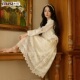 木司2017春夏女装复古白色淑女公主裙子显瘦长裙蕾丝连衣裙夏女神