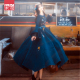 木司秋冬女装复古文艺淑女公主长裙重工刺绣修身高腰长袖连衣裙女