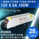 新款长条LED开关电源12V 8.5A 100W灯条灯箱监控12V100W电源变压