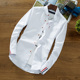 春季白色男士长袖衬衫修身韩版潮流休闲男装衬衣服打底青少年寸衫
