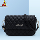 稻草人女包单肩包小包时尚品牌黑色精品韩版新款菱格折叠包夏季款