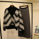 2016秋冬新款性感时尚套装破洞镂空毛衣复古印花半身裙两件套女装