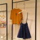 2017夏装新款牛仔背带裙两件套气质淑女韩版时尚吊带连衣裙套装女