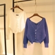 2017春装东大门灯笼袖短款外套女V领毛衣开衫新款毛针织衫上衣