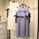 2017夏季新款小清新学生女装可爱A字裙中长款白色条纹露肩连衣裙