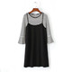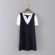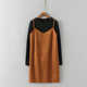 精品单 2017春季新款时尚百搭针织打底衫两件套 鹿皮绒背带连衣裙