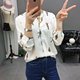精品单 女装2017春季新款韩版白色V领镂空五分袖休闲衬衫上衣