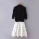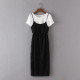 2017春夏新款 白色短袖+中长款吊带修身假两件蕾丝裙 连衣裙