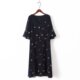 精品单 女装2017新款韩范碎花连衣裙喇叭袖收腰V领雪纺中长裙潮