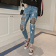 2017夏季新款破洞渔网小脚牛仔裤女宽松九分裤哈伦显瘦乞丐裤BF风