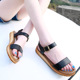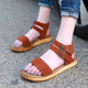 MOMIK2017夏季韩版露趾平底搭扣大码女鞋罗马真皮厚底松糕凉鞋潮